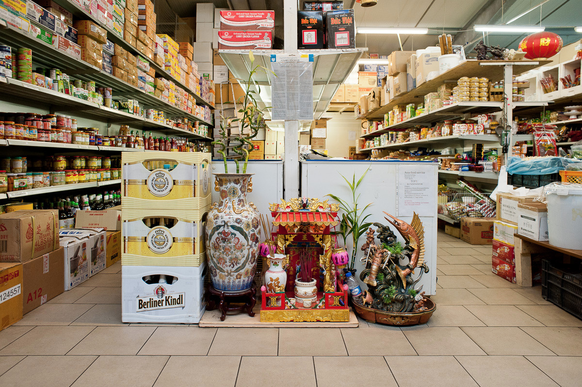 Erst im Laufe der letzten Jahre entstand auf dem Gelände der ehemaligen VEB Elektrokohle in Berlin-Lichtenberg einer der größten Asiamärkte Deutschlands. Namensgeber ist der traditionelle Dong Xuan Markt in Hanoi, auch dieser der größte seiner Art, und damit ein Indikator für den Ehrgeiz seines kleinen Bruders in Berlin. Es sind nicht nur Vietnamesen, die im Dong Xuan Center ihre Geschäfte betreiben, Händler aus zahlreichen weiteren asiatischen Nationen sind hier vertreten. Auf mich wirkt dieser Ort überaus faszinierend. Wie ein Implantat steht hier Neues auf Altem, trotz zahlreicher Spuren der Vergangenheit gibt es kaum Übergänge zwischen Gewesenem und Entstehendem. Die neuen Nutzer bringen ihre eigene Vergangenheit mit, es gibt Berührungspunkte, viele von ihnen waren Vertragsarbeiter in der DDR, und sie schaffen sich unter schwierigen Bedingungen eine neue Perspektive. Der Dong Xuan Markt in Lichtenberg ist ein Ort, an dem Vertrautes und Fremdes unmittelbar nebeneinander liegen und der sich unserer westlich geprägten Erwartungshaltung an ein modernes Einkaufszentrum entzieht.