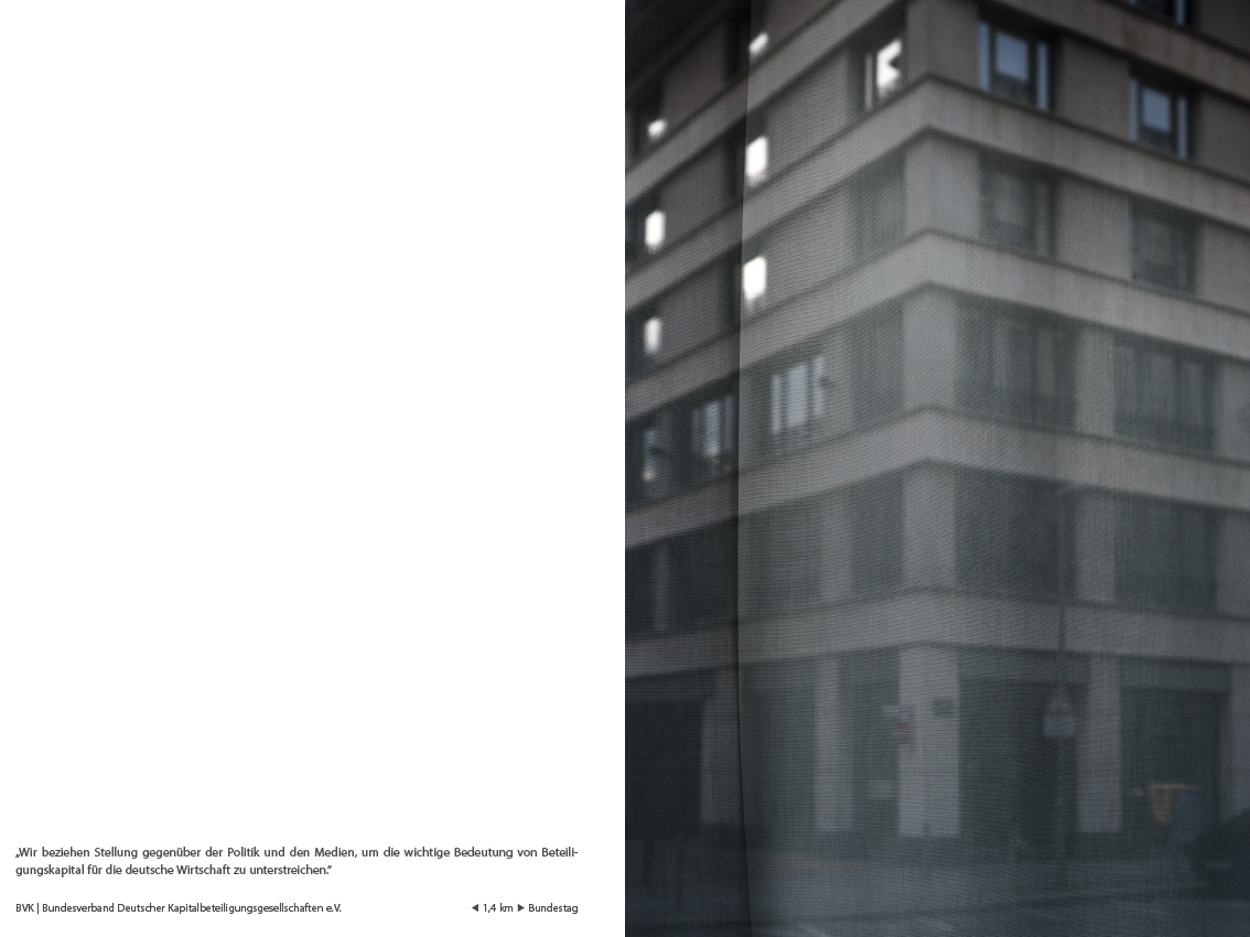 Diese Intransparenz als ein wesentliches Merkmal von Lobbyismus nehme ich als formales Motiv für die fotografische Auseinandersetzung mit dem Thema.